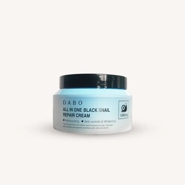 DABO All In One Black Snail Repair Cream is a multifunctional moisturizer infused with black snail extract, niacinamide, and adenosine to deeply hydrate, repair, and brighten the skin. This all-in-one cream enhances elasticity, soothes irritation, and provides anti-aging benefits, making it a perfect daily skincare solution.